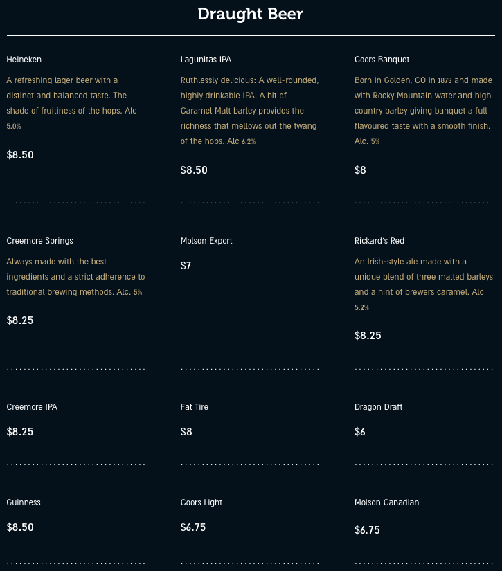 Whether you're a local or just visiting Toronto, The Green Dragon Pub is a must-visit for its vibrant atmosphere, delicious food, and a menu that promises to please. So, why not stop by for a cold drink and those unforgettable wings? With tall cans of popular beers such as Molson Canadian and Stella starting at just CA$6.75, you’re sure to find the perfect pairing for your meal. The Green Dragon is not just a restaurant; it's a destination where flavors come alive and community thrives.